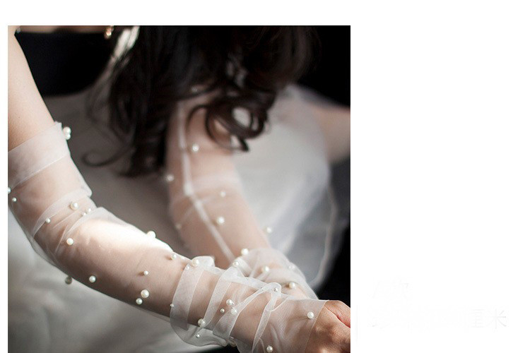 Bridal Wedding Dress Pearl Mesh Gloves White Yarn